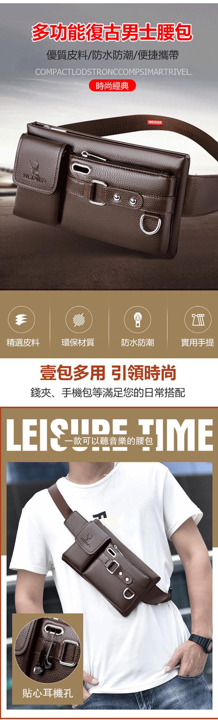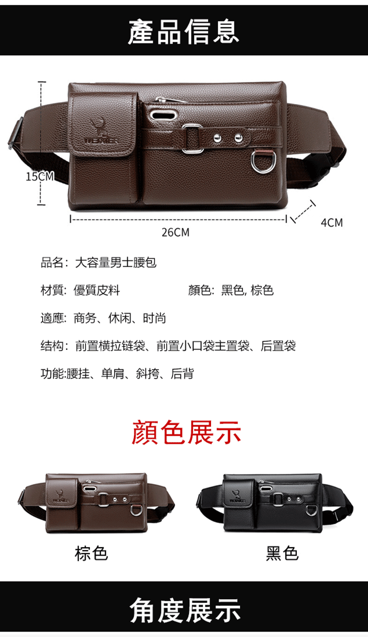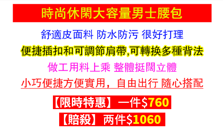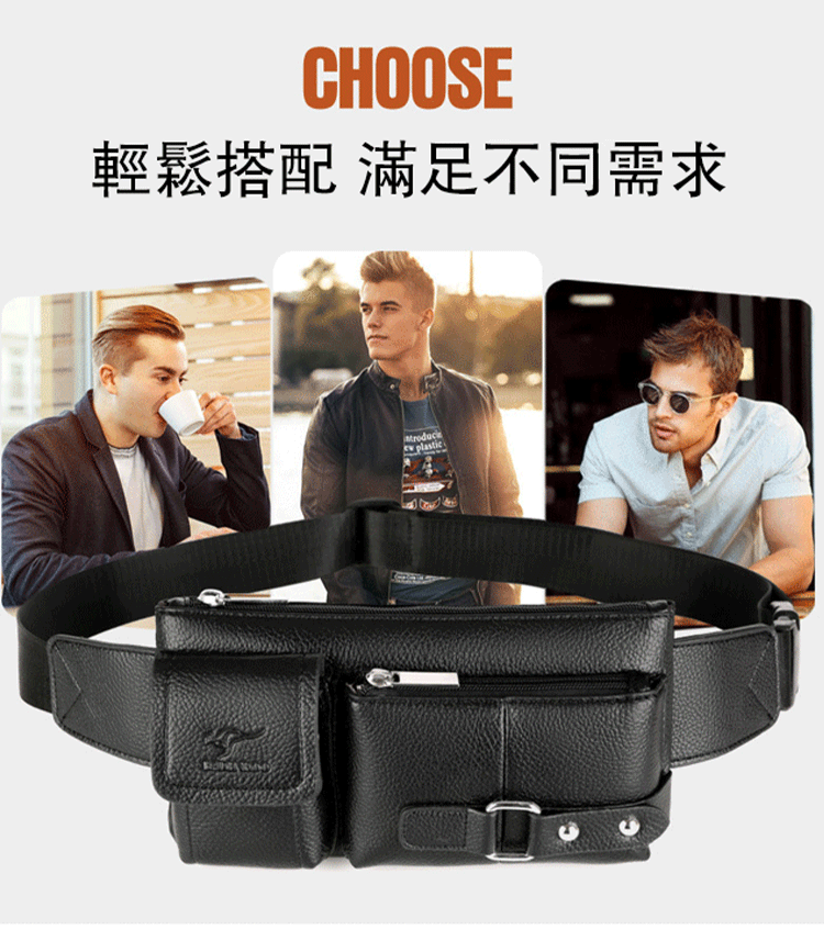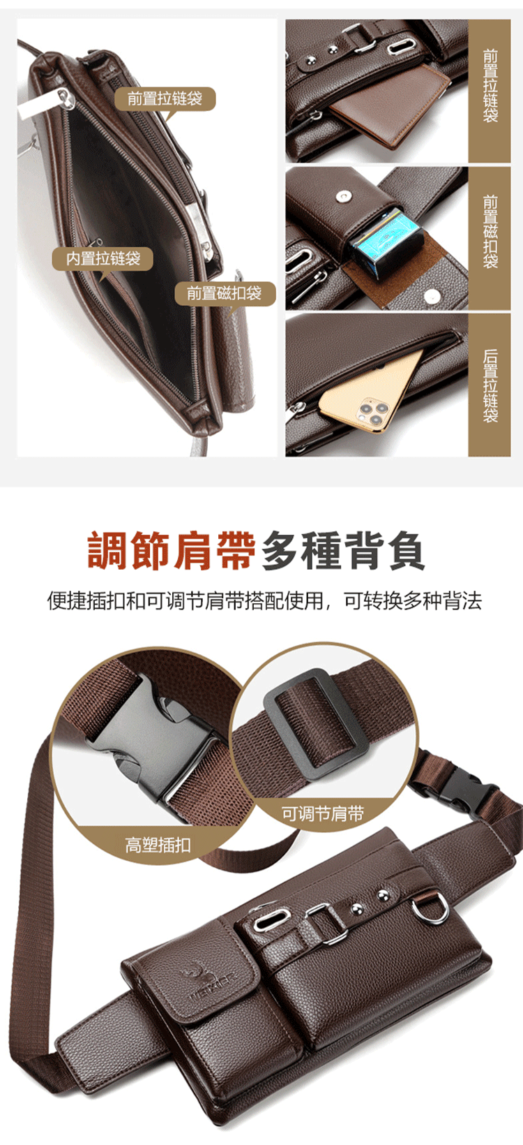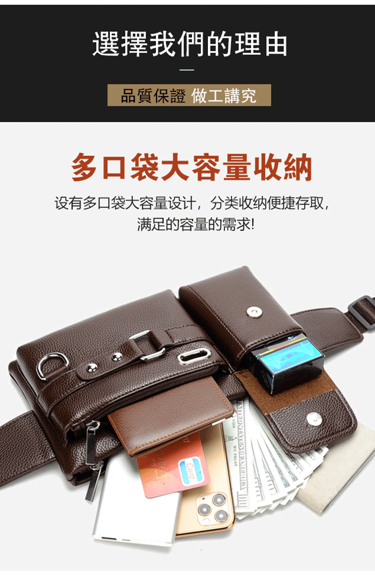 專櫃爆款!【大容量男士腰包】一包多背,超大容量,優質皮料,防水耐磨!